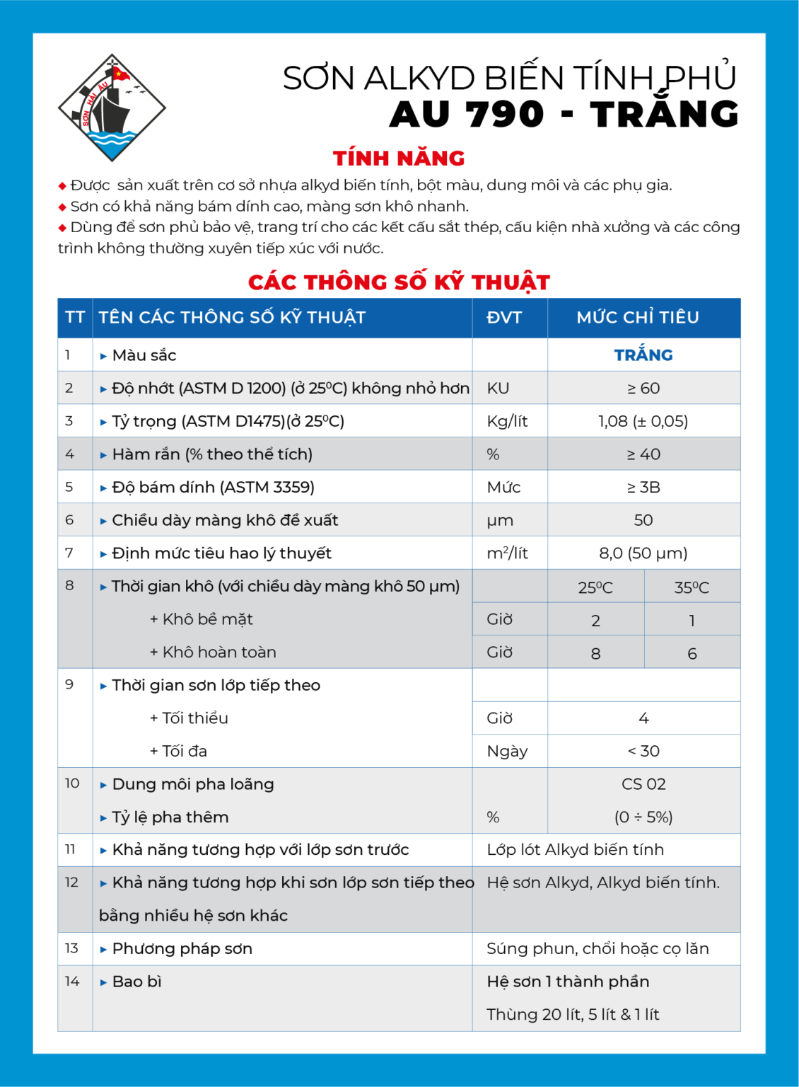 - Được sản xuất trên cơ sở nhựa alkyd biến tính, bột màu, dung môi và các phụ gia.