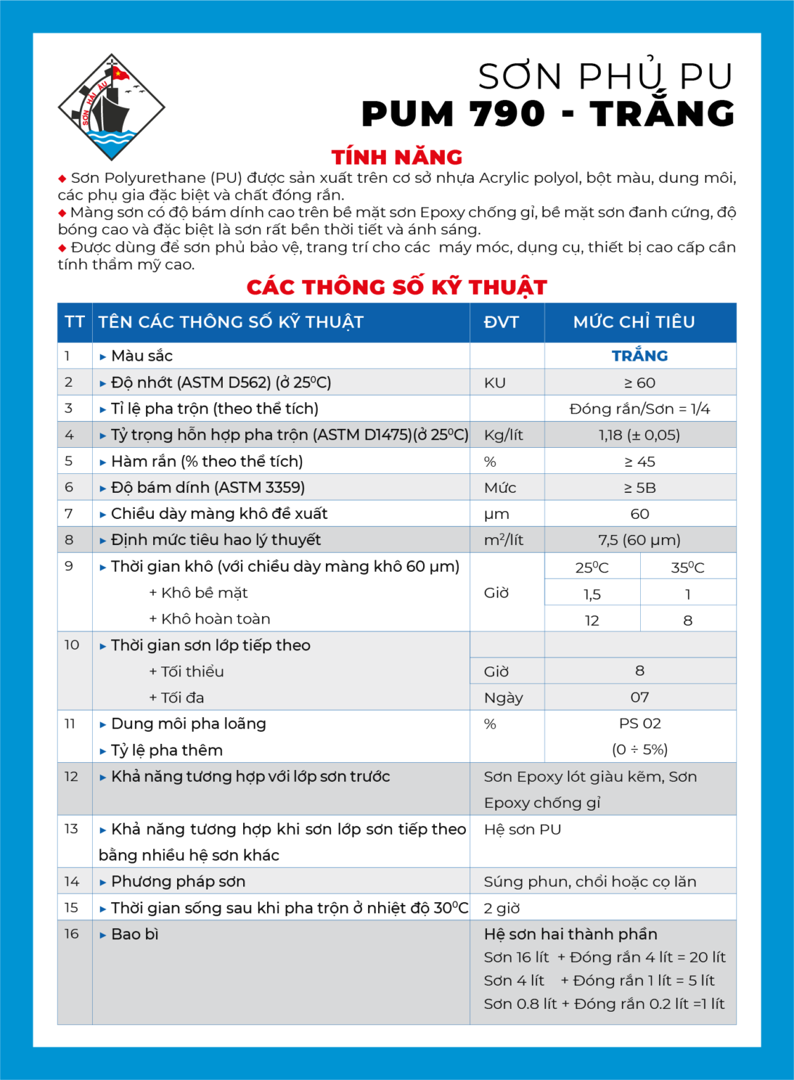 Tags: Sơn đặc biệt, Sơn Hải Âu, Sơn phủ trắng, Sơn Polyurethan(PUM), Trắng